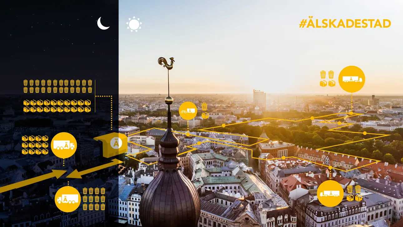 Stockholm såg en utmaning i att godtransporter kom in till staden med fulla lastbilar och lämnade med tomt lastutrymme, samtidigt som återvinningsföretag kom in i staden med tomma lastbilar och lämnade med full last. Tillsammans kom man på en lösning. År 2016 startade Bring, Ragn-Sells och Vasakronan konceptet Älskade stad i samarbete med Stockholms stad. Tillsammans utvecklade man ett samarbete för att minska fordonsrörelser i stadskärnan. Bring levererar varor till Vasakronans fastigheter i centrala Stockholm. Där tar Ragn-Sells emot och lastar om varorna till elfordon. Varorna levereras till mottagarna (butiker och kontor). Avfall (torrt) och varor tas tillbaka till garaget och samlas i större behållare/komprimatorer för att transporteras ut ur staden.
